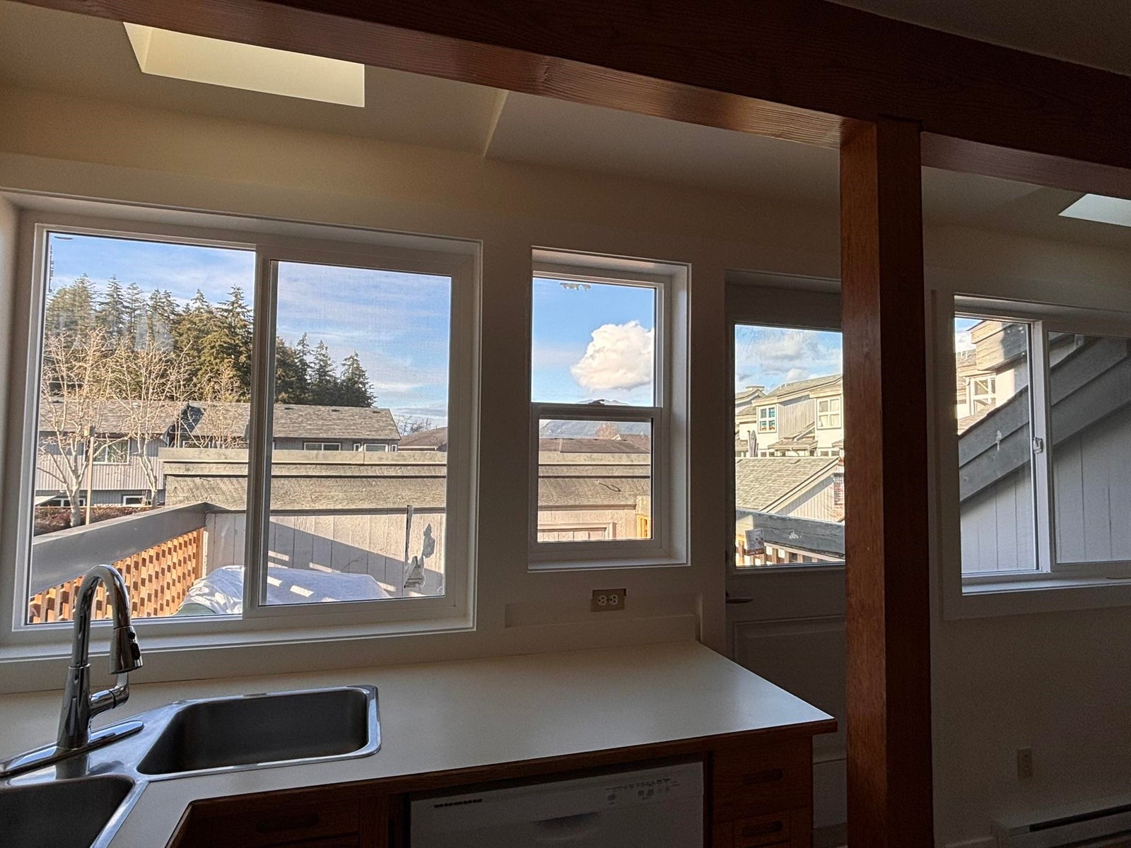Must sell! Move-in ready 3-bed, 2-bath end-unit townhome just blocks from downtown Sechelt and across from beach and boat launch. This rare architectural gem offers 1,400+ sq ft with vaulted ceilings, exposed beams, and stunning natural light through updated windows. The reverse plan features 2 BR on the main level that walk out to a private patio, plus a top-floor suite ideal for guests or a home office. The main level features a spacious great room with a cozy wood-burning fireplace, vintage oak kitchen cabinets, and a deck off the kitchen with mountain views—perfect for BBQs. Pets (1 dog or cat) allowed. New floors throughout add to the fresh, stylish feel. A great opportunity for investors or first-time buyers—this could rent and cover ownership costs. Don't miss this one!