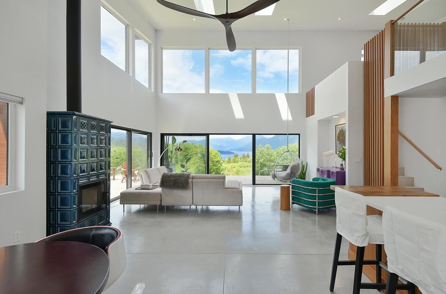 Custom-built West Coast modern home with European design influence on nearly 5 acres of private estate land. This ocean view, light-filled, open-concept 3-bedroom, 3-bathroom + flex room home is built to last with metal roof and siding, quality finishings, concrete floors, and over height ceilings. Opportunity to earn farm status with a fenced orchard and garden, supported by a 1600 gallon rainwater collection system. A 240V generator hook-up with its own sub panel adds peace of mind. Plus a volleyball court, 530 sq ft rental & hot tub. Zoning allows 2 homes and septic system already sized for both. Close to trails and surrounded by other estate properties, very private yet close to all of the amenities of Sechelt—rare, serene, and truly one-of-a-kind. Call today for more info