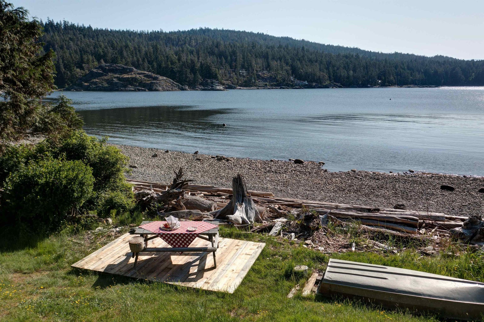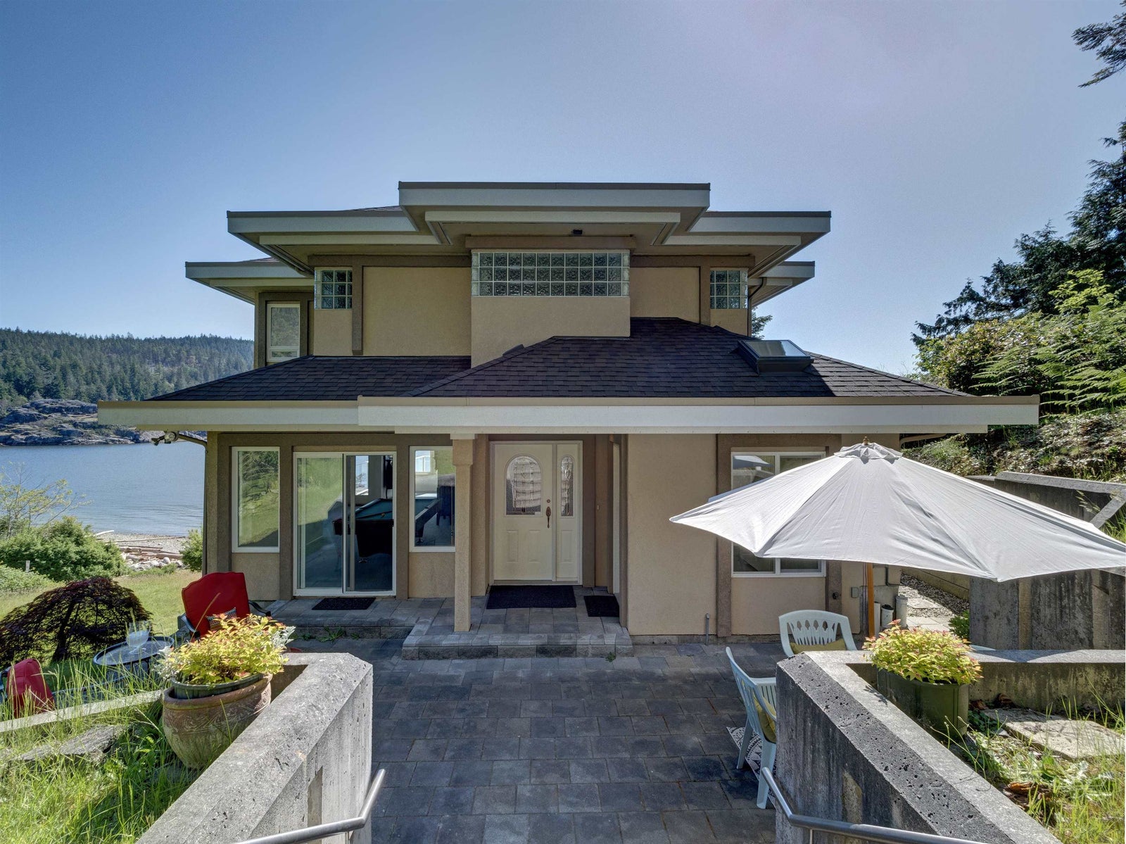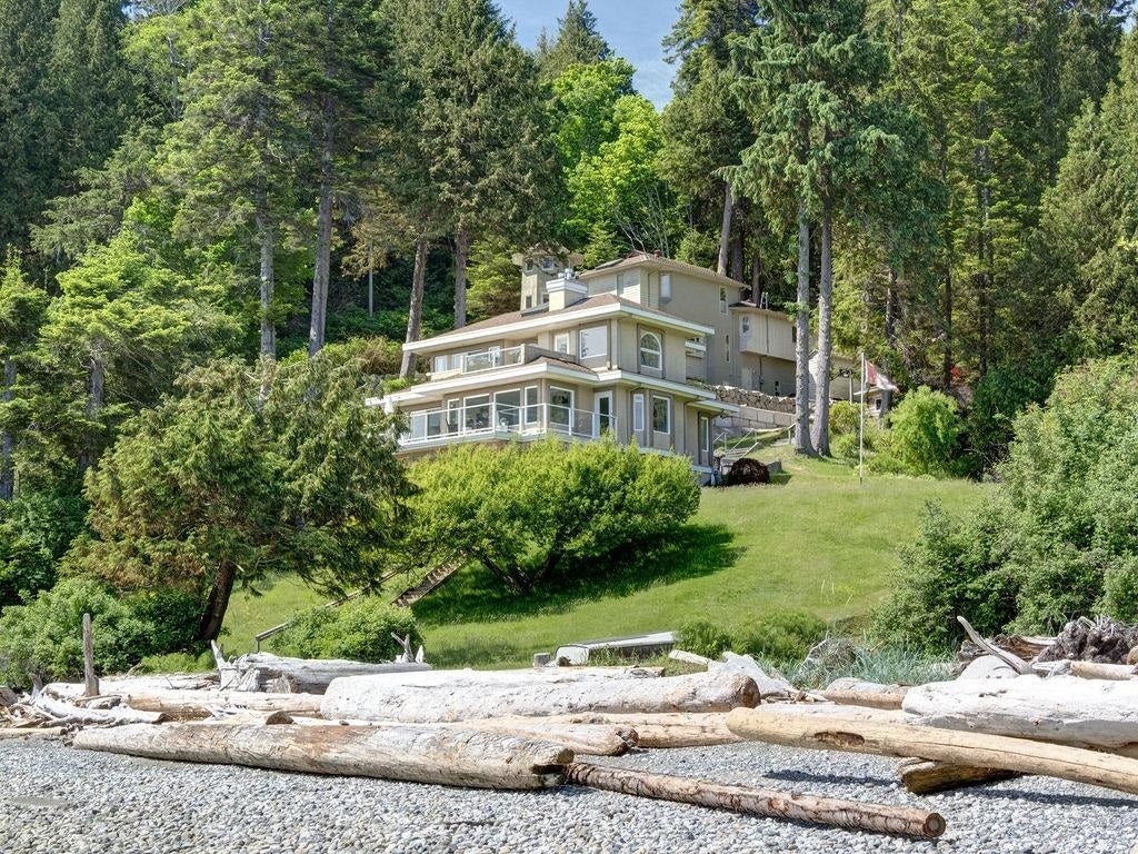 Rare 1.24-acre walk-on waterfront in Sargeant Bay with 100’+ of usable beachfront. East-facing shoreline captures sunrises over the Trail Islands; the large grassy yard enjoys afternoon sun—ideal for gardens and outdoor living. Step onto the beach to launch kayaks/paddleboards, beachcomb, or enjoy calm bay waters—walk-on beachfront like this is exceptionally rare in Halfmoon Bay. The home is pristine & original with thoughtful upgrades—comfortable to enjoy now while planning your dream home. A studio suite can easily convert to a 1-BR suite, allowing the main home to be 3 BR plus hobby/office. Powered 2-car garage (possible carriage home above—buyer to verify). Zoned for an add’l dwelling with a private upper build site. Improving driveway access increases convenience & value.