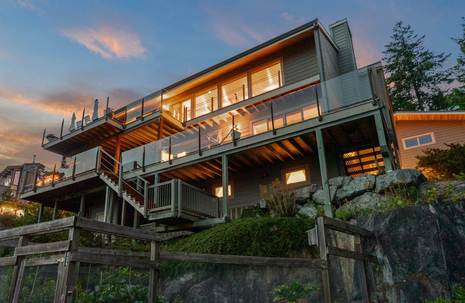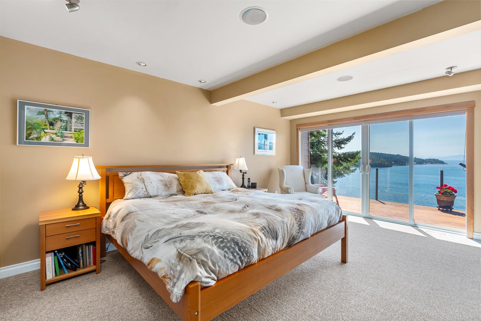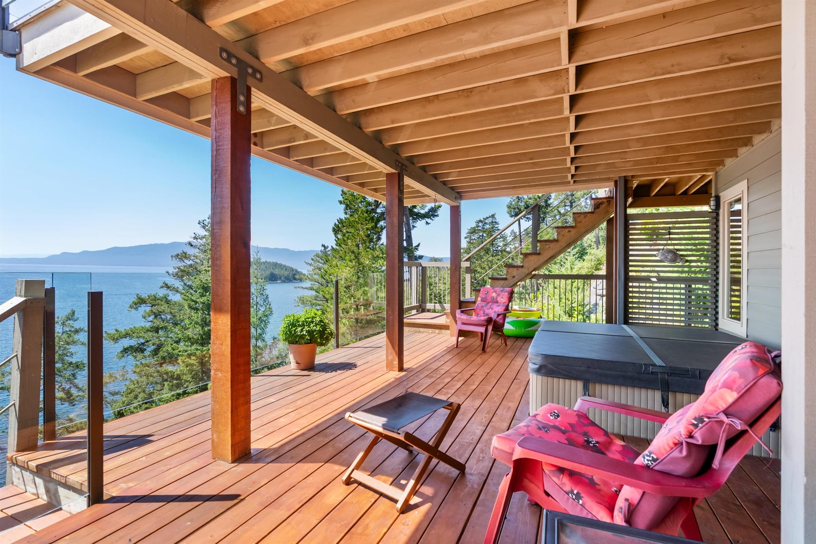 Architecturally designed waterfront residence in prestigious Daniel Point, offering elevated coastal living with sweeping south-facing ocean views. Vaulted ceilings and rich wood interiors frame a light-filled main living space designed for refined comfort. The primary suite is a private sanctuary with spa-inspired ensuite and ocean view balcony hot tub. Flexible spaces—including an office or fourth bedroom, guest/flex retreat, and dedicated studio—create room for visiting family or creative pursuits. Set on a beautifully landscaped, low-maintenance 0.52-acre property with a fenced garden and a large room below the garage used as a workshop. Private shoreline access invites kayaking and quiet seaside moments. An exclusive, secure enclave ideal for lock-and-leave luxury living.