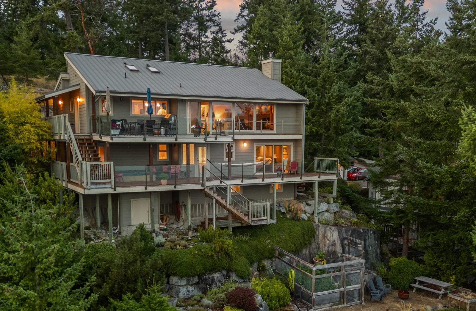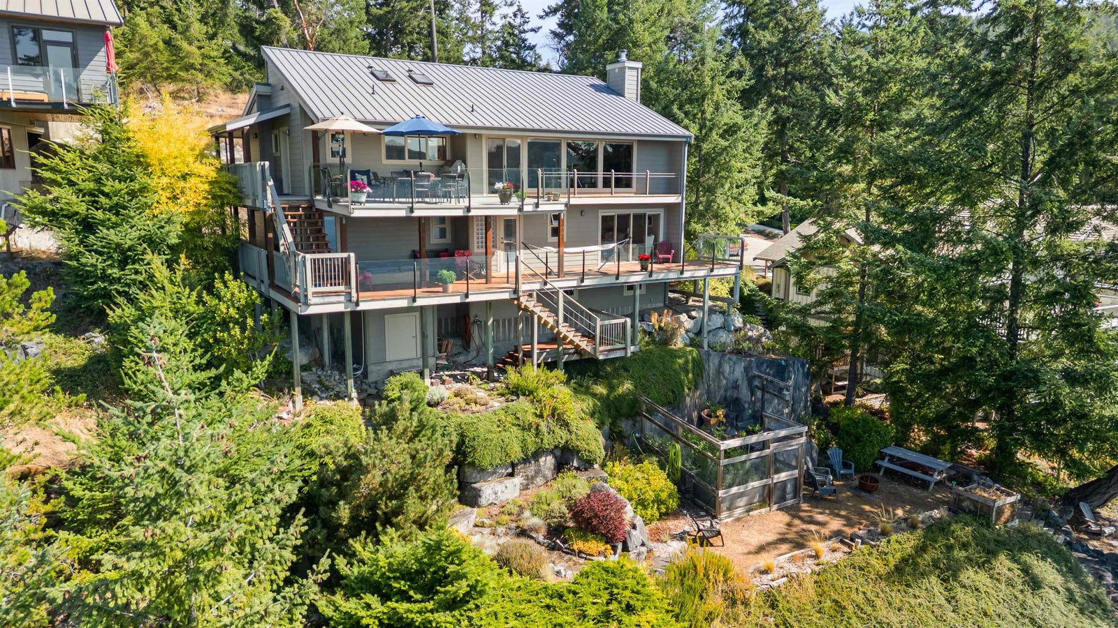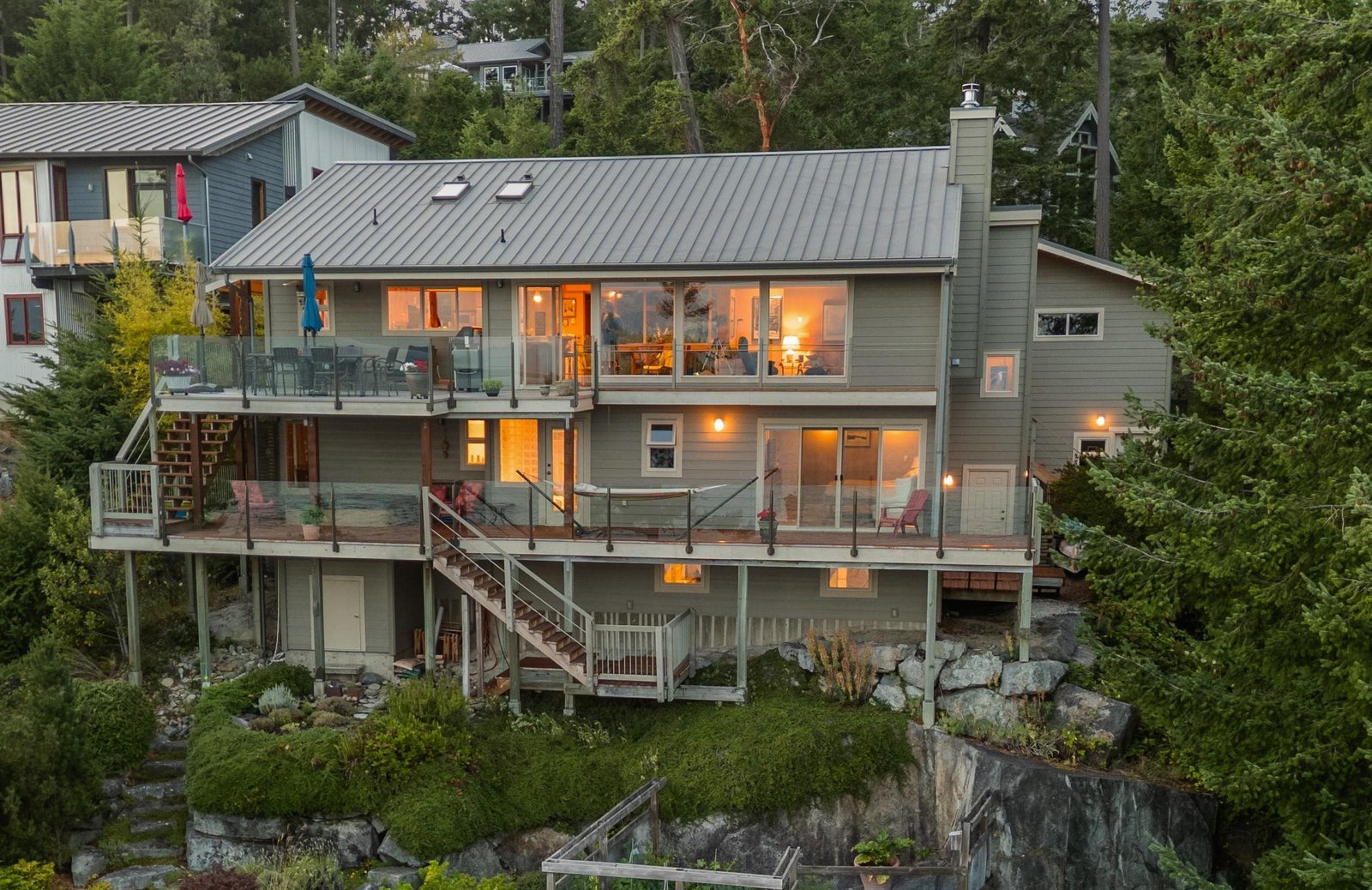 Architecturally designed waterfront residence in prestigious Daniel Point, offering elevated coastal living with sweeping south-facing ocean views. Vaulted ceilings and rich wood interiors frame a light-filled main living space designed for refined comfort. The primary suite is a private sanctuary with spa-inspired ensuite and ocean view balcony hot tub. Flexible spaces—including an office or fourth bedroom, guest/flex retreat, and dedicated studio—create room for visiting family or creative pursuits. Set on a beautifully landscaped, low-maintenance 0.52-acre property with a fenced garden and a large room below the garage used as a workshop. Private shoreline access invites kayaking and quiet seaside moments. An exclusive, secure enclave ideal for lock-and-leave luxury living.