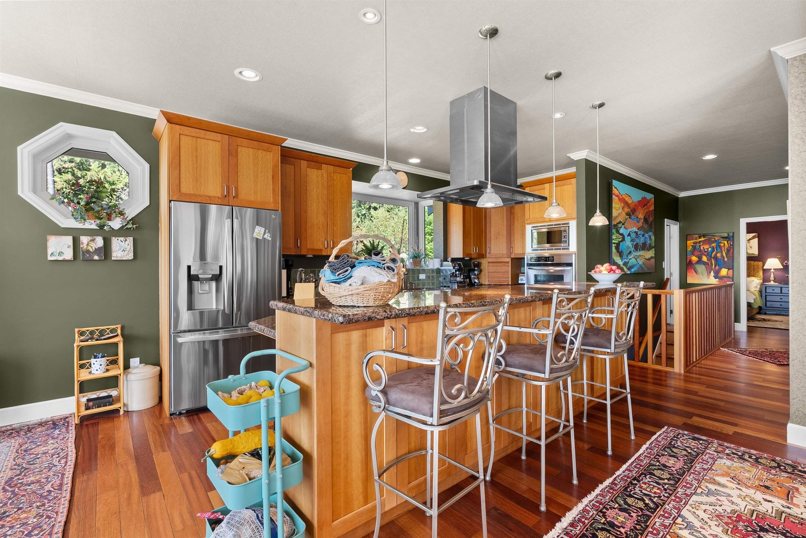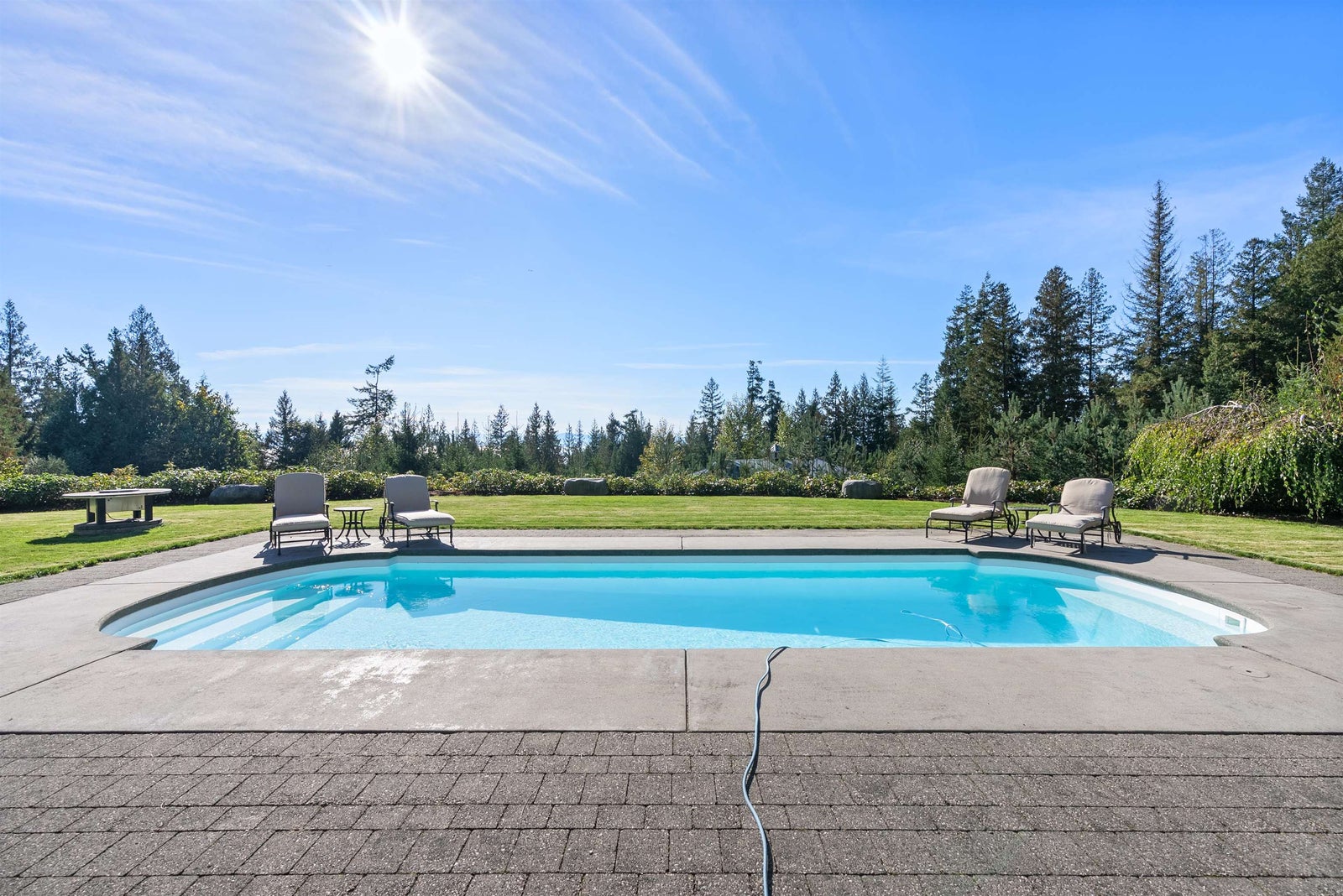 Beautiful 9.54-acre equestrian estate in desirable Roberts Creek. Panoramic ocean views, privacy and a turnkey country lifestyle. Formerly a dahlia farm with orchard, berries and greenhouses, it could easily regain farm status. The custom 5BR home features meticulous craftsmanship—Brazilian cherry floors, cherry cabinetry, granite counters, double ovens, butler’s pantry and formal + casual living. Covered balconies capture sunsets, while the walk-out lower level opens to a 32’ heated pool, hot tub, fenced yard and summer kitchen with suite potential. Equestrian facilities include an overheight 3-stall barn, turnout, training paddock, huge workshop and a fully self-contained 2BR suite above for income or staff. 3-car garage and dog run add convenience. Luxury, horses and coastal living!