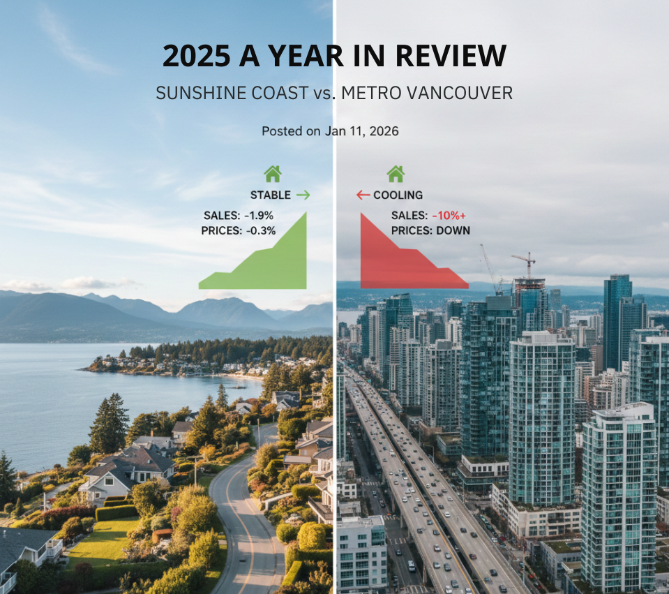 The Sunshine Coast real estate market closed 2025 in a different position than many urban centres across British Columbia — but not because it avoided change. After a rapid run-up during the pandemic years, the Sunshine Coast experienced a noticeable price decline earlier than Metro Vancouver, with most of that adjustment taking place between mid-2...